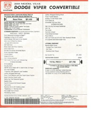 2005 dodge viper srt-10 convertible 2-door 8.3l