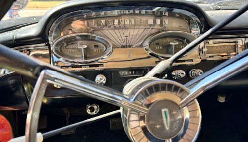 The specially-prepared pony car had a pearlescent cream paintjob with narrow blue racing stripes, functional hood scoop, chrome trim, Euro-spec fender-mounted mirrors, a blue leather and aluminum interior, a monogrammed fuel cap... and a 289-cubic-inch V8 under the hood.