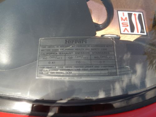 I have owned this vehicle for many years. Always garaged and maintained by the Ferrari dealership in Orlando Florida. The mileage is 16006 actual miles. The color paint is red with tan interior which matches the vin color and interior from factory. The car is listed in the Ferrari Register and I have a copy of the register book.