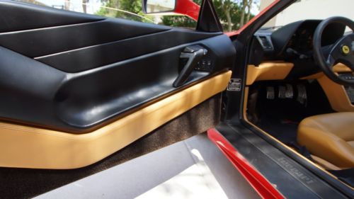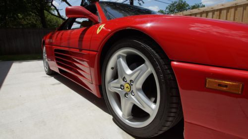 Up for sale is this beautiful 1990 Ferrari 348 TS in Rosso Corsa (racing red) with tan leather interior. This Ferrari has 50761 miles and has been maintained and serviced by Norwood of Dallas since I have owned it. I have documents dating prior before I purchased indicating a well kept vehicle being serviced through its life by various Ferrari dealerships. This car comes with original tool kit wrapped it original leather tool pouch. The catalytic converters have been deleted for sound quality but do come with the car. The catalytic converters are a simple bolt in procedure. The Simpson 5 point race harnesses were installed in the car prior to my ownership but original OEM seatbelts and tracks and motors do come with the car. Aftermarket Sony cd player has been installed as well as 6 disk cd changer in the front baggage compartment prior to my ownership. I have owned this car since July, 2010, I purchased from a reputable dealer who had oversaw the timing belt change and valve timing job. I purchased this car with only 47130 miles and since 2010 I have only put 3631 miles on this car, mostly highway and back country driving. Interstate battery installed in 2014 and been maintained with a battery tender. NO 1-4, 5-8 lights on, NO SLOW DOWN light on. Only light that comes on is of coarse the seatbelt light. Front lights pop right up and operate. Air conditioning blows cold for a car over 20 years old. These Ferraris do not have power steering! The power windows do function and do go up and down but not as fast as newer cars, this is to be expected with older Ferraris. Photos included show actual real time condition of car, notice that driver seat on bolster has started to fade from getting in and out of the vehicle. Overall this car is a top and defiantly turns heads and is a great enjoyment to own and drive. Serious buyers ONLY! Have any questions? Call Race 214-244-0998.