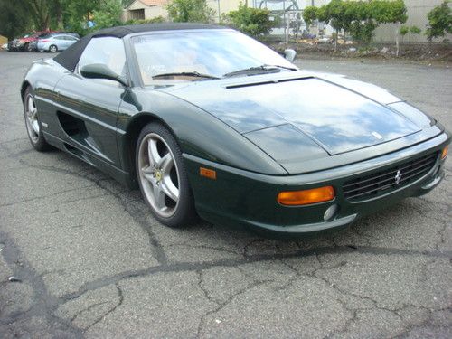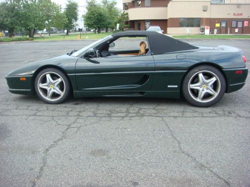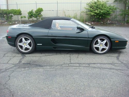 1997 FERRARI F-355 SPIDER, 12140 MILES, 6 SPEED, DARK GREEN / TAN LEATHER / BLACK CONVERTIBLE TOP.