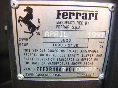 ORIGINAL AND VERY WELL SERVICED. THE VERY IMPORTANT BELT SERVICE HAS BEEN DONE BY FERRARI,3039 MILES AGO, AT A COST OF $7,169.58. THE BOTTOM RIGHT SIDE OF THE FRONT SPOILER HAS A SMALL 2" SCRATCH