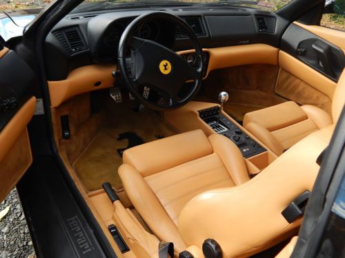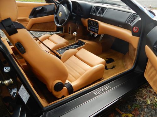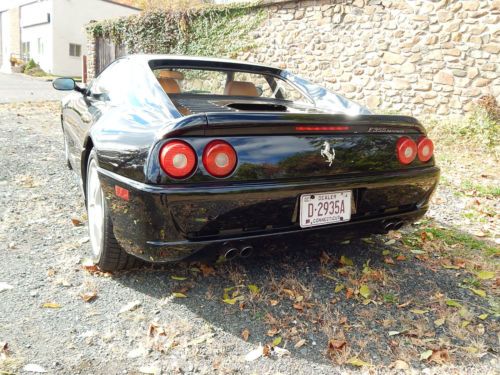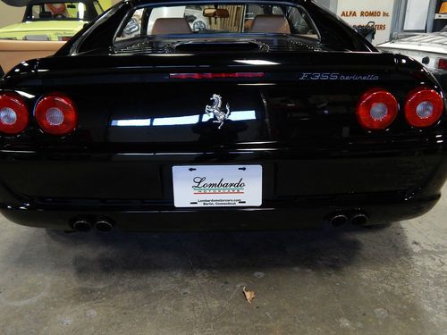 1997 Ferrari F355 Berlinetta , Black over Tan Leather. Excellent Condition with low mileage. Very good service history with the Major engine service ( Timing belt) performed by Ferrari dealer 6/2011 at 16,576 miles. Other Recent service includes New Clutch and New high flow Catalytic Converters. Fresh Oil and transmission service just performed with synthetic oil. Almost full tread Bridgestone Potenza tires provide a superior ride and handling. Car includes Both Keys and Black and Red transmitter, Tools and owners manual pouch with manuals , Clear Car Fax report, Clear title, Ready to drive and enjoy. Please note The Side Badges are of high quality but they are not a factory item.