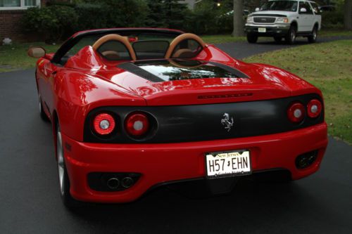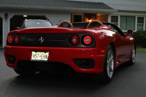 You are looking at a 2004 Ferrari Spider with F1 transmission. Car has a little over 6,100 miles and is in perfect condition both inside and out. No sticky buttons or stretching on the leather like found on most 360's. Has all books, seat covers, car cover and factory trickle charger which is still in it's plastic seal. It is also wired with an after market battery charger. Seats are perfect with almost no wear what's so ever. Options include Red brake calipers, Hi Fi Audio with Sub woofer, Power Daytona seats, CD Changer and Challenge Grill. No paint work or accidents and has a clean car fax record. I am the second owner but car fax may show that I am the 3rd since the first owner leased it first. I purchased the car certified from Ferrari of Central NJ. I am a BMW guy at heart and traded my 2013 F10 M5 for this car. I love the car and had fun with it but it's time to get a new M6 now. There are no issues or stories with this car. First person that see's it will buy it! This is one of the cleanest 360's anywhere. It is located at the Jersey Shore off of exit 105 on the Garden State Parkeway. Contact me with any questions.