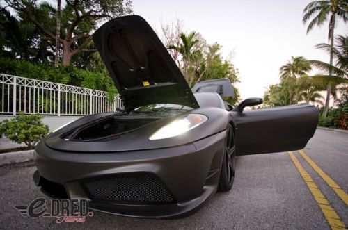 For sale is the ultimate monster Ferrari F430! This car was carefully crafted with no expenses spared and not even the tiniest detail overlooked. On the exterior of the vehicle it has been fitted with a VIS full custom body kit lined with carbon fiber rockers and a rear bumper that boasts a large carbon fiber diffuser. The color of the vehicle is a custom mixed "SATIN GUNSHIP GREY" which in pictures is beautiful but in person is absolutely breath taking! As for the wheels and suspension the car sits on a set of custom KSPORT fully adjustable coil overs and rides on a custom set of 21 rear/20 front Forgiato EXTREME CONCAVE wheels wrapped in Pirelli tires which are almost brand new. Moving into the motor bay is a $17,000 dollar Capristo full headers/exhaust/cats system imported from Germany especially for this car. Also with the electronic cut off valves this Ferrari growls in stealth mode setting and screams in racing mode "controlled by a wireless key chain remote." The motor bay is also illuminated at night to show off the beautiful Ferrari motor underneath the glass. Moving to the interior of the vehicle are custom upholstered, fitted, and heated Recaro racing seats two tone black and red diamond stitched suede. Backs of seats are color matched to the body of vehicle. Also to keep the driver safe yet looking good is a harness set up with a custom suede diamond stitched cover to match the rest of the interior. Vehicle also is upgraded with a full audio system with behind seat compact custom box wrapped in suede and graced with a red Ferrari emblem. This Ferrari has been featured in lots of online publicity which you are free to "google" yourselves to read up more on the vehicle. Anyone who purchases this vehicle will be getting a one of a kind performance machine and aesthetically awesome Ferrari! There have been no accidents, issues, etc with this vehicle also car fax is 100 percent clean. I have all of the service records from vehicles entire past in hand. Don't miss out on the opportunity to purchase this Italian beast for cents on the dollar! LOW RESERVE! Please no scams, dealers, or low balling.. Car is for sale locally seller reserves the right to cancel auction at any time while below reserve. Happy bidding.