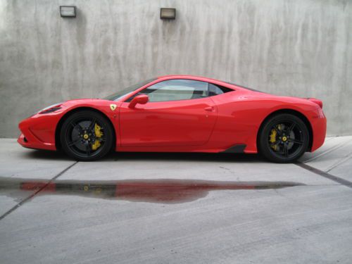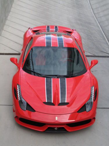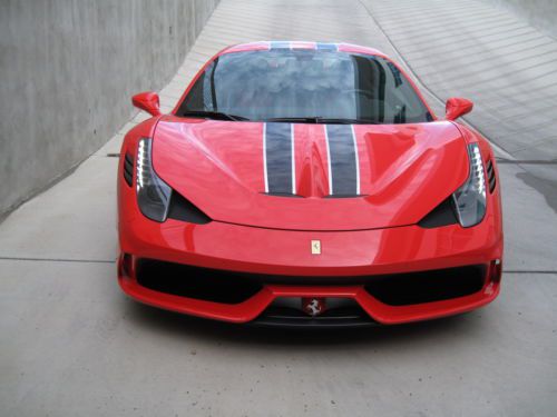 2014 Ferrari 458 Speciale, Only 1,950km, Rosso Scuderia on Nero Leather, 4.5L 597HP, F1 Transmission, AFS Front Lighting System, Alcantara Center Seats, Alcantara Headliner, Brake Calipers in Giallo Modena, Carbon Fiber Front Air intake, Carbon Fiber Sills, Cruise Control, Leather Trim Interior, Leather Inner Wheel Arches, Leather Lower Zone Upholstery, Front Lift Suspension, Embroidered Prancing Horse on Headrest, Titanium Sport Exhaust, Scuderia Ferrari Shields, Homelink, Rear Parking Camera, Front & Rear Park Sensors, 20" Matt Nero Forged Wheels, Yellow Rev Counter, Racing Livery, Carbon Fiber Racing Seat, Leather Steering Wheel, Integrated Audio System, Navigation, Bluetooth, Visit us @ http://www.kulumotorcar.com