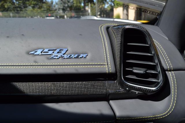 This 2012 Ferrari 458 Spider Base has got it all starting at the Carbon Fiber Racing Seats, Carbon Fiber Driver Zone + LEDS, Carbon Fiber Lower Cabin Zone, Carbon Fiber Dash Inserts, Front Wing in Carbon, Cruise Control, Leather Central Tunnel, Suspension Lifter, Scuderia Shields, Ipod Connection, Navigation and Bluetooth, Parking Camera, Front and Rear Parking Sensors, 20' Sport Forged Diamond Rims, and finally all stitchings in Yellow