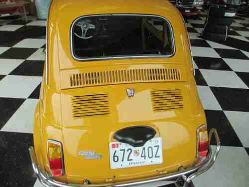 1971 Fiat 500L Guerrera Engine 750cc 4 speed manual transmission.Imported from Italy In 2010. In storage Untill 2013.Clear Maryland Title. Copies Of Import documents. Car runs and drives great. Had to clean carburators a couple of times. Has electronic Ignition. Tires and wheels fairly new.Has older repaint . Scratch on right side. Some small bubbles onder paint In couple of places.Looks great but would need paint job.Verry nice Driver.Have some extra parts bumpers steering wheel tail lights stock exhaust.