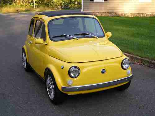 this is a clean fiat 500 with no problems AT ALL!!! this belonged to the father of dave the owner of MR. FIAT auto parts in georgia. it's been restored properly and upgraded with the 650 sport engine, synchronized 4 speed and suspension and brakes from the 126. a rust free car that was repaint a few years ago with a good urethane paint. couple of minor nicks but 0 rust. great chrome, interior was redone in fabric and has a center console and killer stereo. 3rd brake light and halogen headlights. new top and great heat. car is very "fiat" fast with lots of torque to climb hills WITHOUT downshifting. rims are momo and look fantastic, tires are 13 inch with plenty of tread. call me with questions. dave 908-305-6861. i'll help with shipping at your expense. the yellow car is a more performance fiat with disc brakes and performance 650 engine and bis synchronized trans built in viterbo italy. i would sell it for $14,000