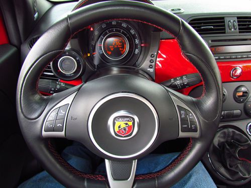 FIAT's 500's for with a big punch. The car has attracted an enthusiastic following among young urban professionals since its 2007 introduction in The car is front-wheel drive and comes with 4-wheel anti-lock disc brakes and standard stability control. The Abarth delivers a 4-adult-passenger. Included is the 15-inch painted wheels with shiny trim and includes seven air bags, climate control, and an AM/FM/CD/MP3 audio system with an auxiliary audio input. There is a FIAT's hands-free communication technology is included as is a USB port and iPod control capability. All current FIAT 500 models are front-wheel drive and powered by a 1.4-liter, DOHC, 16 valve, 4-cylinder engine with sequential multi-port fuel injection. Standard numbers is 101 HP and 98 lb-ft of torque, this Abarth with its Turbocharger delivers 160 hp and 170 lb-ft of torque. Those are big numbers considering the Abarth weighs only around 2,300 pounds! A 5-speed manual gearbox is standard. Factory Navigation!!! Average fuel mileage is 28 mpg city and 34 mpg highway. What make this car special? Chrysler used this Abarth as part of its marketing program; it was even used on a professional speedway race track. This is a great car and has outstanding performance! Feel free to call us to ask any questions 1-888-467-3354. This car is in great condition bumper to bumper Great Italian Style From Every Angle DOCUMENTED--- TRUE RACE TRACK HISTORY ! ! ! G205/40 ZR17 High Performance Tires on 17" Lightweight Abarth Alloy Wheels Rear Spoiler The Beautiful High Performance Abarth Engine with Intercooled Turbocharger! IT ALSO HAS THAT FACTORY "DEEP THROATY" SOUND Race Style High Bucket Seats with Side Bolsters and Red Accent Stitching Bench Rear Seat For Passenger Comfort Lots of Storage Space In The Back Have Questions? Call us 1-888-467-3354 Steering Wheel Controls! A Very Nice Array Of Professional Gauges 7094 CERTIFIED MILES Lights and Wiper Controls is on the Wands Cruse Control Buttons are on the Steering Wheel Italian Influenced Controls Panel Complete But Simple Lay-Out is Easy to Use While Driving