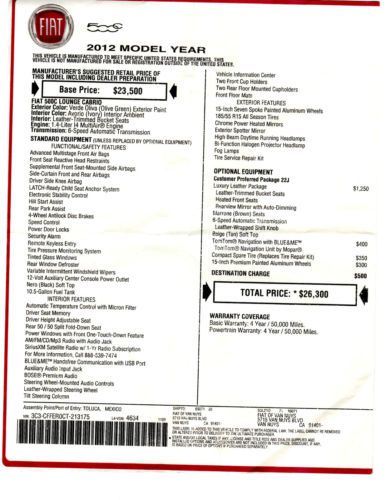2012 Fiat 500 C Lounge Convertible 2-door 1.4l Save Thousands Buy Salvage No/res on 2040-cars