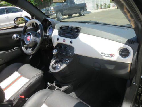 I am selling our 2012 Fiat 500 Convertible Gucci edition. This is one the 500 Gucci cars built for the U.S. This car is in perfect condition both inside and out. This car has been dealer serviced since new and is still under the new car warranty. The car has been garaged always and has never had any paint work or accidents. The car is loaded with automatic transmission, Bose premium sound, SAT radio, CD and Bluetooth. It is Gucci black with the two tone premium Gucci interior. Please call if you have any questions or if you would like to see additional pictures. 619-890-4414