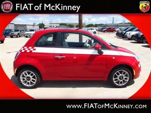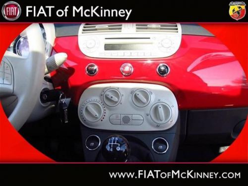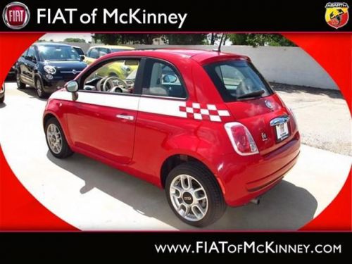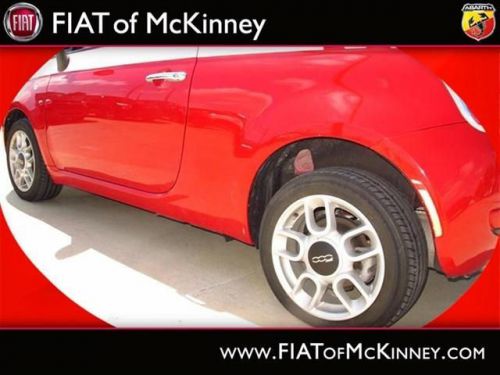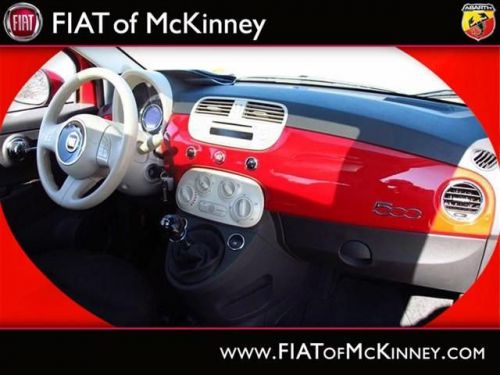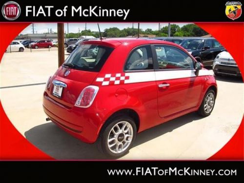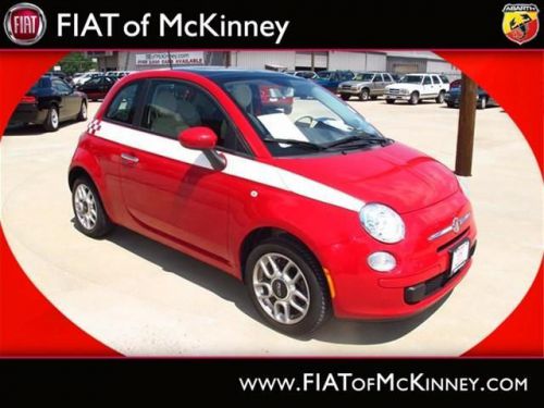 FIAT of McKinney is offering this clean and reliable 2012FIAT500Pop$1,176 below NADA Retail* Right car! Right price!!! $1,176 below NADA Retail* How comforting is it knowing you are always prepared with this tip-top Vehicle!! Special Web Pricing on this notable Pop... Great safety equipment to protect you on the road: ABS, Traction control, Curtain airbags, Passenger Airbag, Daytime running lights...A wealth of standard amenities means that you no longer have to sacrifice: wireless phone connectivity - BLUE&ME, Power locks, Power windows, Air conditioning, Cruise control.... Please contact our Pre-Owned Sales Department at 888-871-9401. Large selection of new and preowned vehicles. We have access to over 2000 pre-owned vehicles so if we do not have it, we can find it for you. We also deliver to most places in Texas and Oklahoma...call us for more details!