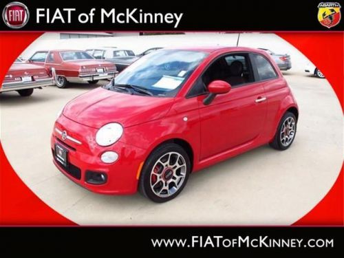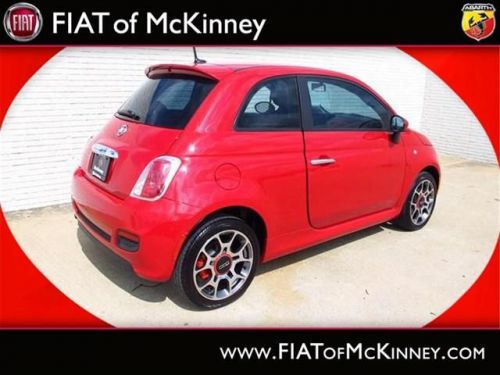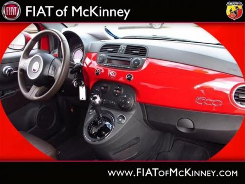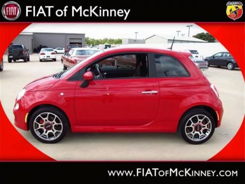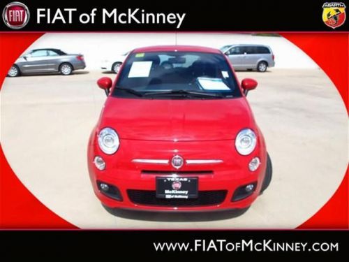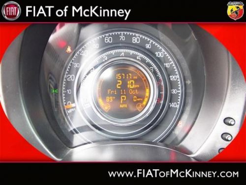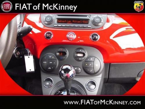 FIAT of McKinney is offering this clean and reliable 2012FIAT500Sport Less than 17k miles!!! You don't have to worry about depreciation on this tip-top Sport!!!!!! Fun and sporty!! SPECIAL INTERNET PRICING*** It does everything so well, except be lazy. Safety Features Include: ABS, Traction control, Curtain airbags, Passenger Airbag, Front fog/driving lights...How tempting are all the features on this 500: wireless phone connectivity - BLUE&ME, Power locks, Power windows, Air conditioning, Cruise control.... Please contact our Pre-Owned Sales Department at 888-871-9401. Large selection of new and preowned vehicles. We have access to over 2000 pre-owned vehicles so if we do not have it, we can find it for you. We also deliver to most places in Texas and Oklahoma...call us for more details!