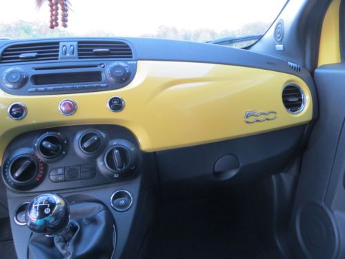 Isabella is a yellow Fiat 500 sport edition, with black/gray leather interior. She has a few paint scratches on her rear end but nothing too noticeable. She has been well loved and taken care of, getting all services and checkups when required. Her interior looks almost exactly like she did the day we purchased her, taking good care to make sure that there were no stains, minimal scratches to the door and dash, and no tears in any of the seats. We drove her off the lot with only 7 miles on the dash! Since then we have put all mileage on the car. When we first drove her off the lot we took her on a trip from New York City to upper Wisconsin and back. She did so wonderfully on the trip we decided to take her on another road trip, taking her around the east coast from New York City to New Orleans, down to Miami, and back up. Her last big trip was our move to Florida where Isabella has been housed ever since. During the time that we were in New York City she was housed in a garage where she was taken very good care of there. We moved before Hurricane Sandy, so thankfully she never sustained any damage from that disaster. We are truly sad to see her go and love Fiats in general, but we are starting a family and will be needing to move up to a larger more big family friendly vehicle. It will be a sad day when we give her up, but as long as she goes to a family that will love her and take good care of her, we will be happy! Isabella is a great starter car for any teenager learning how to drive because she is a fun, zippy little car with all the safety features to make any mom and dad happy! It also gives your teen the knowledge on how to drive a manual transmission; a talent that is being lost with these newer automatics. My mother always said, if you can drive a stick shift, you can drive anything! Please help my Isabella go to a good new home!! And please, if you have any questions at all contact us! We are happy to address any questions or concerns you may have!!