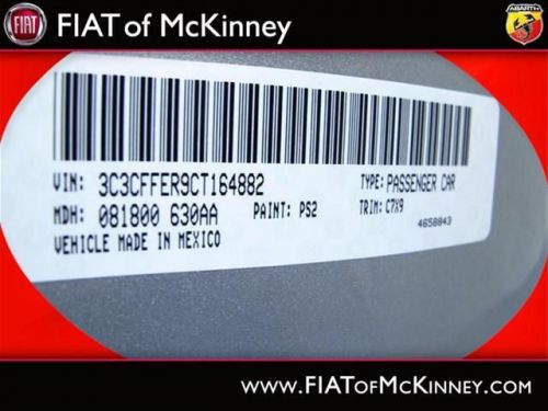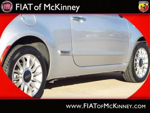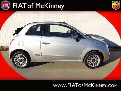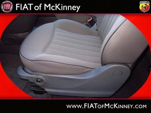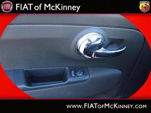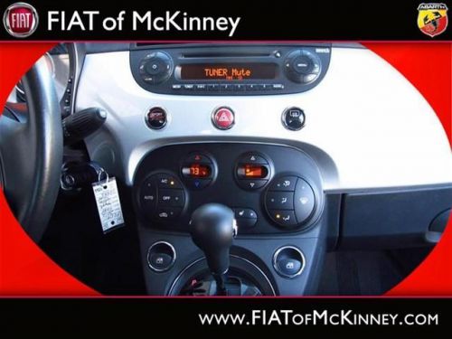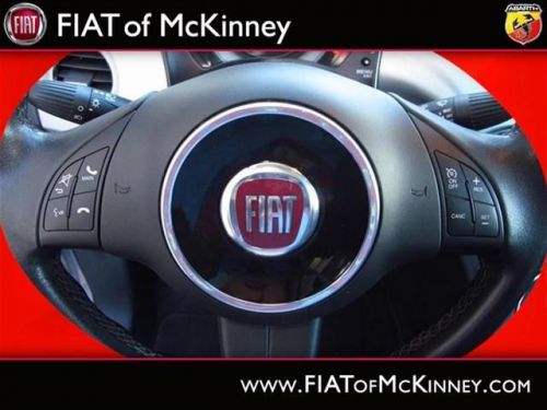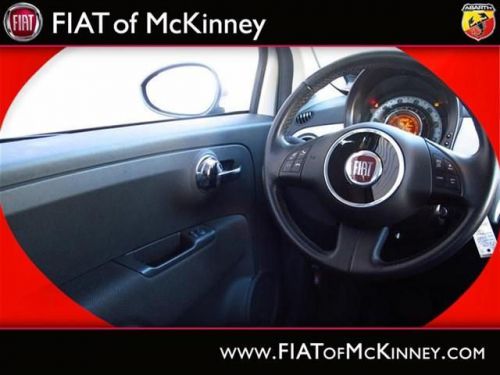 A real head turner!!! Special Internet Pricing on this marvelous 500c... A real head turner!!! Very Low Mileage: LESS THAN 13k miles*** Great MPG: 32 MPG Hwy!!! Where are you going to stumble upon a nicer 2012 500c Lounge at this price? Nowhere, because we've already looked to make sure* Oh, and did you notice that it's generously equipped with options: Convenience Group - Includes Rear View Mirror w/Auto Dim, Heated Front Seats, Wheels: 15' x 6.0' Premium Painted Aluminum, Compact Spare Tire... FIAT of McKinney is proud to offer this ONE OWNER, 2012FIAT500cLounge Special Internet Pricing on this marvelous 500c... A real head turner!!! Very Low Mileage: LESS THAN 13k miles*** Great MPG: 32 MPG Hwy!!! Where are you going to stumble upon a nicer 2012 500c Lounge at this price? Nowhere, because we've already looked to make sure* Oh, and did you notice that it's generously equipped with options: Convenience Group - Includes Rear View Mirror w/Auto Dim, Heated Front Seats, Wheels: 15' x 6.0' Premium Painted Aluminum, Compact Spare Tire.... Please contact our Pre-Owned Sales Department at 888-871-9401. Large selection of new and preowned vehicles. We have access to over 2000 pre-owned vehicles so if we do not have it, we can find it for you. We also deliver to most places in Texas and Oklahoma...call us for more details!
