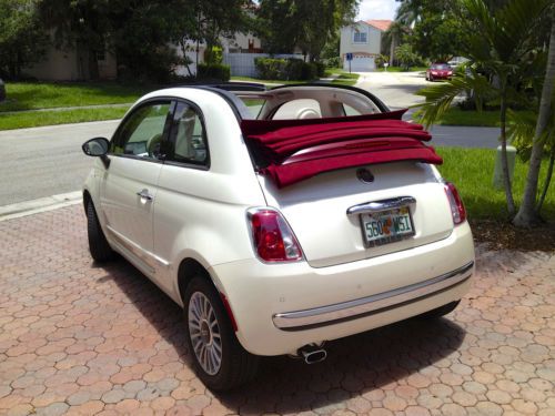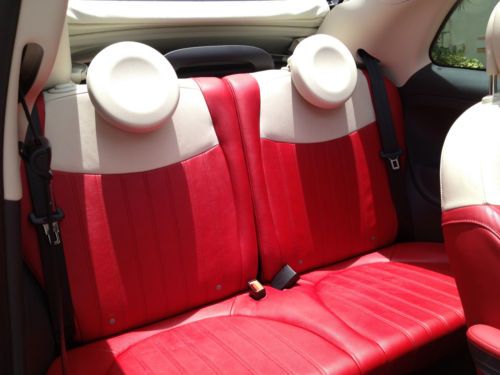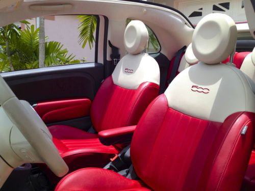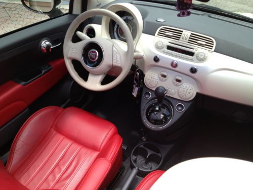 Here's your chance to own the cutest little italian convertible on the road! We're having a baby and must sell our favorite car. This is the "Jennifer Lopez" model, fully loaded with every available option. Pearl white with red convertible top, red leather interior with matching pearl dashboard, navigation, premium wheels, Bose sound system, Bluetooth phone/radio, rear defrost, cold AC, HID headlights, fog lights, factory warranty to 60k miles! Absolutely perfect condition, garage kept and accident free! 41 MPG! Best of all, private seller! No hidden dealer fees and no hassel. You can own this slightly used FIAT for significantly less than a new model.