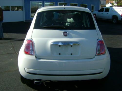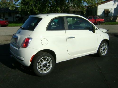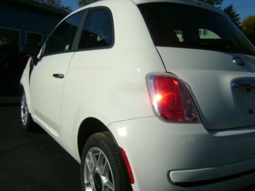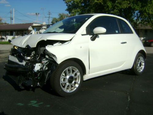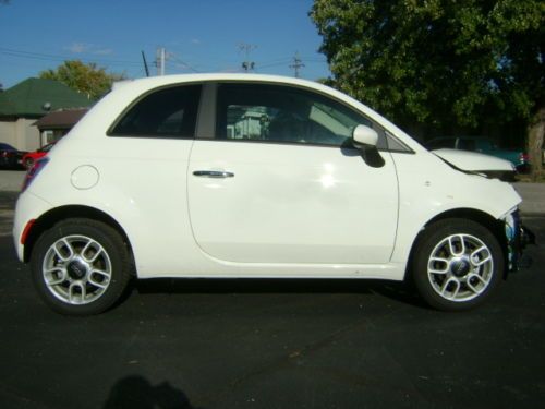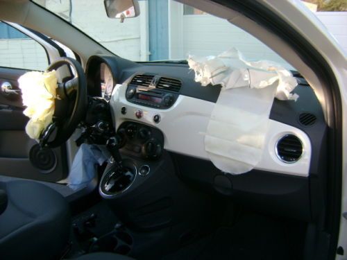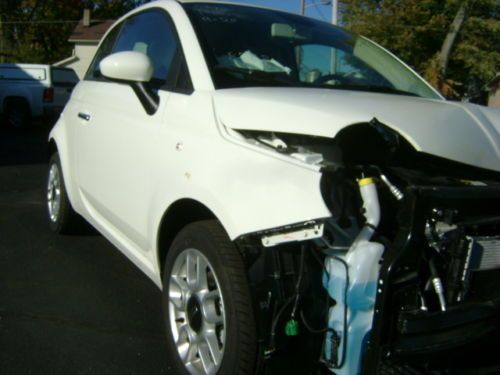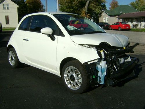 2013 FIAT 500 POP 1.4L MULTIAIR AUTOMATIC TRANSMISSION BODY MAN'S SPECIAL CLEAN AND CLEAR TITLE NO RESERVE ONLY 2,887 MILES PLEASE READ ENTIRE DESCRIPTION BEFORE BIDDING We at CAMPBELL BROTHERS AUTO SALES INC. are offering for sale this 2013 FIAT 500 POP with a 1.4L MULTIAIR L4 S.F.I. DOHC 16V ENGINE and AUTOMATIC TRANSMISSION. We purchased this vehicle from a large leasing company. When this vehicle had ONLY 2,887 miles on it and was less than 2 months old it was involved in a collision resulting in damage to the front of the vehicle. The impact was primarily to the left front corner of the vehicle. The impact appears to have been high and above the frame/unibody rail. There is a slight bend to the top of the left bumper horn but for the most part the rail appears to be straight. We have not had a professional body shop look at this car however from what we can see the damages is to the following parts and areas....... bumper cover, grill, left head light, left fog light, bumper reinforcement, A/C condenser, radiator, core support, fan, air intake (cracked), exhaust heat shield (lightly dented), left fender, left inner fender, and hood. Basically everything from the fan forward could have damage. The drivers front and knee airbags did deploy along with the passengers front airbag, and as designed the front seat belts locked in position. NO other airbags deployed in the accident. As a result of the drivers knee airbag deploying the steering column housing (plastic) came apart making it difficult to turn the key to the start position.The car will start and run however you must manually turn the internal ignition. With all of this being said there is NO damage to any other panels on the vehicle. Even the right front fender has NO damage except for a scuff that we cause while transporting. The vehicle does start and drive however due to the radiator and fan being broken it can not be allowed to run long. With the exception of the damage caused by the collision this car still looks and even smells new. This vehicle will make for a good and somewhat easy fix, and with ONLY 2,887 miles on it is well worth the effort. This vehicle had an M.S.R.P. of over $16,000. Regardless of that we are selling this FIAT with NO RESEREVE and with a CLEAN and CLEAR TITLE!!!!!! If you have the body repair ability or a friend that does this could make you an inexpensive 2013 FIAT 500 POP or a NICE PROFIT! This 500 POP comes equip with the following options.... 2013 FIAT 500 POP