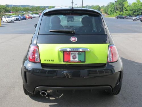 CLEAN CARFAX, LOW MILEAGE, MANUAL TRANSMISSION, HEATED LEATHER SEATS, RECENTLY SERVICED, REMAINING FACTORY WARRANTY This black 2013 Fiat 500 Turbo whips around windy roads with ease, thanks to its responsive five-speed manual transmission and powerful 1.4L MultiAir turbocharged inline-4 engine, that pumps out 135 horsepower and 150 pound feet of torque! The Turbo trim is a more muscular version of the Fiat 500 Sport and features a sport-tuned suspension, larger brakes, a beefed up body kit and a sport exhaust system! Red brake calipers, 16 alloy wheels, spoiler, smoked headlights and tail lights and chrome tip exhaust pipes further add a sporty aesthetic! This 2013 Fiat 500 Turbo is loaded with conveniences, such as full power accessories, automatic climate control, premium Beats Audio system with AM/FM/CD/MP3 and Sirius Satellite connectivity, leather-wrapped shift knob and steering wheel (mounted audio controls), black leather upholstery, heated front, bucket seating, heated side mirrors, fog lights and daytime running lights! This clean Carfax, one owner 2013 Fiat 500 Turbo has a low mileage of less than 4K miles and a remaining factory warranty! Call Fiat of the Triad, located in Greensboro, NC, to schedule a test drive today! * The advertised price does not include sales tax, vehicle registration fees, other fees required by law, finance charges and any documentation charges. * Images, pricing and options shown are examples, only, and may not reflect exact vehicle color, trim, options, pricing or other specifications.