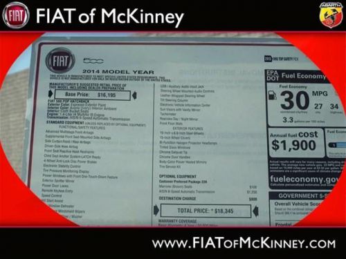 All the right ingredients!! There is no better time than now to buy this noteworthy 2014 FIAT 500 Pop, ready to do-it-all for you*** All the right ingredients!! Special Financing Available: APR AS LOW AS 0% OR REBATES AS HIGH AS $1,500!!! Safety Features Include: ABS, Traction control, Passenger Airbag, Curtain airbags, Stability control...It has tons of features such as: wireless phone connectivity - BLUE&ME, Power locks, Power windows, Air conditioning, Cruise control...