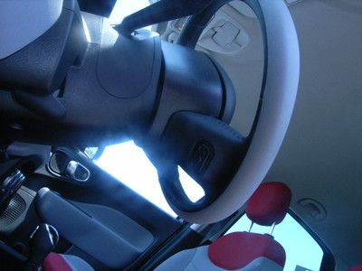 And it's not like you don't get some fancy content for that coin. There's a new interior environment that either can be done up in all black, or a black/white contrast, to match the exterior color choices of, well, black or white. There are high-quality leathers used throughout the cabin, as well as satin chrome accents. Outside, the signature Gucci green/red/green stripe runs along the beltline on hardtop models, and along the cloth top on the 500C. Gucci badging is found on the door frames, accented with chrome mirrors and door handles. And of course, there are unique 15-inch aluminum wheels with the interlocking "GG" design on the center caps.