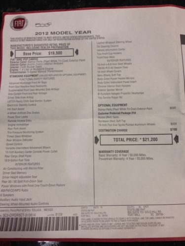 2013 fiat 500 sport 2dr hatchback alloy bluetooth leather heated sunroof alpine(US $19,400.00)
