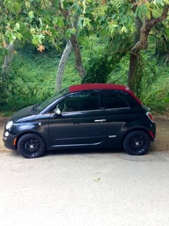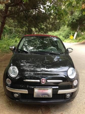 2012 FIAT 500 LOUNGE CONVERTIBLE RARE COLOR COMBO, BLACK WITH RED TOP AND RED AND WHITE INTERIOR LEATHER. AMAZING FEATURES! BOSE SATELITTE STEREO, NAVIGATION, BLUETOOTH, CUSTOM BLACK WHEELS, HEATED SEATS, STILL UNDER FACTORY WARRANTY BUMPER TO BUMPER EVEN MAINTENANCE! THIS IS A RARE BEAUTY I GET STOPPED ALL OF THE TIME WITH THIS CAR! |