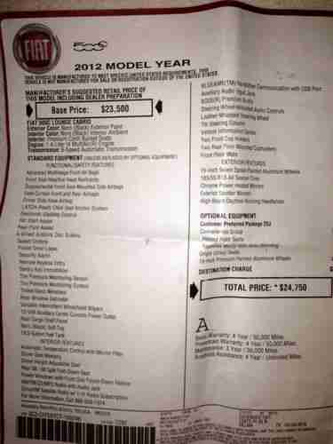 Our jobs are moving my family to China, and the Fiat must go. What can I say, I love this car. Most of the details have been covered in the description. I might add that I am 45 years old and the sole driver of this car. I have posted as many pictures as I can. The car has only been serviced by Fiat under the complimentary three year service program. It is still under regular factory warranty as well. I bought the car new.