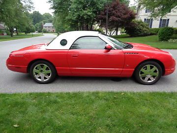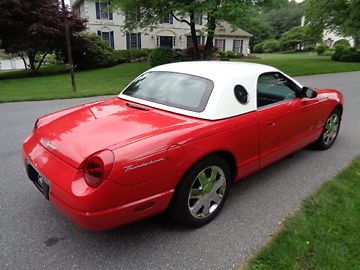 SINCE MY WIFE AND I RECENTLY RETIRED WE MADE THE DECISION TO SELL THE T-BIRD. WE HAVE DECIDED TO BECOME PRACTICAL FOR LONG TRIPS AND NO LONGER SPORTY! AS YOU MAY TELL, I DON'T WANT TO SELL THE CAR. THE CAR AND COLOR COMBINATION HAVE A LOT OF EYE APPEAL AND WE CERTAINLY ENJOYED OWNING IT. WE ARE THE ORIGINAL OWNERS, PURCHASED 1/13/2004 FROM GARNET FORD IN CHADS FORD, PA. THE CAR WAS SERVICED BY SHERIDAN FORD AND HOCKESSIN GOODYEAR. THE "BIRD" HAS BEEN WELL MAINTAINED AND LAST YEAR WE HAD AN ISSUE WITH ONE OF THE COIL PACKS. INSTEAD OF THE SINGLE REPLACEMENT WE REPLACED ALL 8 AND RECENTLY HAD A NEW BATTERY INSTALLED. MILEAGE IS LOW, 46K AND A PORTABLE ROOF HARDTOP HOLDER IS INCLUDED ALONG WITH A BOOT. WE HOPE YOU WILL STOP OVER FOR INSPECTION AND A TEST DRIVE. WE ASK FOR A $500 DOWNPAYMENT AND FINAL PAYMENT BALANCE WITHIN A WEEK. YOU WILL LOVE THIS CAR!!!