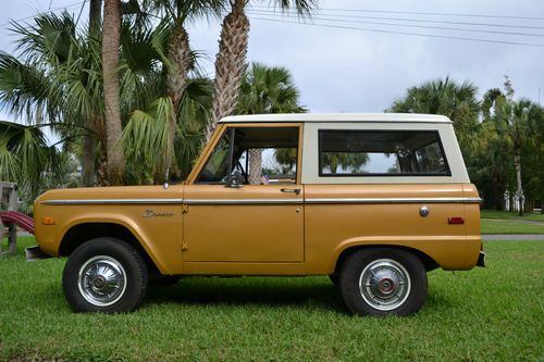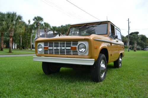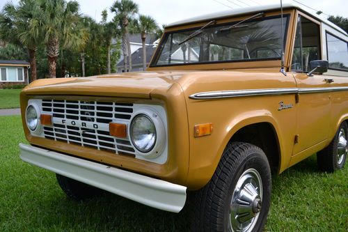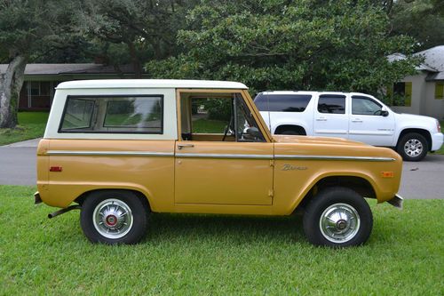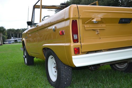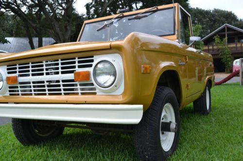 For sale is an uncut 1970 Ford Bronco with removable top. I purchased this from an older gentleman in Georgia whom was a mechanic. He was meticulous with the engine which is evident in how well it drives. It starts up easily and the steering, clutch, and breaks work great. There are no fluid leaks and does not pull to the left or right. All lights and windshield wipers work. When you press the windshield wiper water knob you can hear the motor working, but I am waiting for the new solvent bottle to install. Windows open and glide smoothly including the back hatch. It has the original a.m. radio and I have purchased a new speaker for it, but have not yet installed it. Also, the horn is not working. I plan to have my mechanic look at. It could be a fuse. I have owned several Bronco's and by far this is the best running one I have ever owned and it looks great, too.