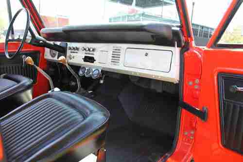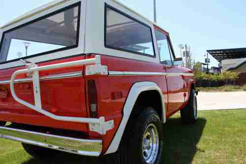 1973 FORD BRONCO NEAR MINT CONDITION. I bought this truck from a family where a frame off restoration was started and the dad passed away before completion. The frame was sanded down and smoothed out and repainted. On reassemble of the frame all new body bushings, radius bushings, brake lines, brakes and hardware, axle seals, 2 new fuel tanks and hoses, all new suspension coil springs and leaf springs, shocks, exhaust,new bumpers, and body bump stops were used. No expense was spared and everything is new. As for the body, it was very solid to start. the only rust repair needed was on the floor pans. Both floor pans were cut out and new OE pans welded back in. the rest of the body was sanded down and primed with a high build primer then shot with a bright white base coat to make the calypso coral really pop. This base coat was wet sanded and prepared for coral basecoat. After the calypso coral was applied it was sanded to 1500 then several coats of clear applied. The final wet sand was cut and buffed to 2500. Paint looks great. Underside of body had undercoating applied also. The drivetrain was rebuilt also. Engine was totally rebuilt and runs strong as can be. After motor was rebuilt I added several modifications...Chrome intake, chrome Edelbrock carb, chrome breather, valve covers, and Chrome brake booster. All new plugs, plug wire, distributor, new alternator, new starter, new fuel hoses, radiator hoses, etc.... A very nice Centech wiring harness was installed professionally and as you can tell in the engine compartment was all properly covered in loom and hidden as much as possible. The interior was updated as follows: James Duff shifters added, new seats and foam, new door panels, arm rests, door handles, mirrors, Rhino lined floor, all gauges work as if new, all lights work, turn signals, some new felt was installed around door glass, new upper and lower door seal, new hardtop and windshield seals, with new windshield glass. This Bronco sits on brand new 31/1050/15 all terrain tires and Pacer wheels. This Bronco has approximately 1000 miles on it since the restoration was complete and operates flawlessly. The doors, tailgate, and hood open and close flawlessly and align well. No Bronco has all the parts and attention to detail that this truck has. The buy it now is priced to sell. All serious offers will be entertained prior to auction ending. This Bronco is sold as-is where-is with no warranty implied. Deposits are 100% non-refundable. Truck is available for inspection at anytime prior to auction ending and I encourage you to have it inspected. You will be very pleased with the inspection report. If you need any additional pics or info do not hesitate to email me. $1000 deposit within 24 hours an balance in cash or cashiers check within 7 days. If a wire or cashiers check is used it must clear prior to pickup. Clear title in hand.