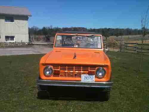 this is a good old truck came from virginia 5 or 6 years ago , runs excellent tows our seadoo boat with no trouble , our cottage is over 200 miles away and we have drivin it there and back for a weekend ,302 strong james duff shifters 3 tops bimimi top soft top and doors and original top and doors these need to be redone, we use this truck as a daily driver in the summer and it has some small scratches and dents ,