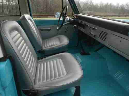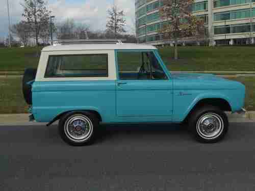 66 Ford Bronco 4X4, Beautiful frame off nut and bolt restoration ( look under this truck)Freshly rebuilt original Ford 170cid inline 6 cylinder ( almost 20mpg )Freshly rebuilt 3 speed manual transmission with new clutch , Factory HD transfer case + HD front & rear differentials w/ locking hubs, Great looking Peacock blue paint, Painted removable hard top,Color matched bumpers and front grill, Fold down front windshield ( so much fun !) New grey bucket seat interior with removable rear seat, Full factory gauges nicely restored too, Original 15" stainless wheel covers, painted wheels and white wall radials, Detailed engine compartment & undercarriage, Great looking, great driving 4X4, on road or off, looking at this truck just makes you smile, how cool is that