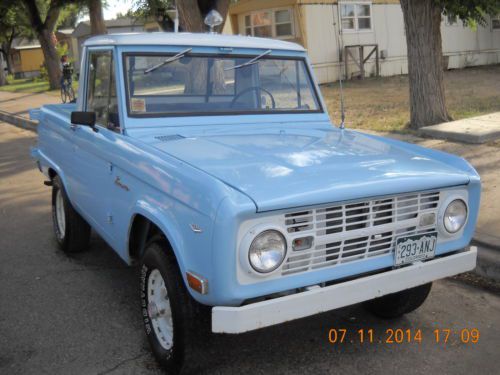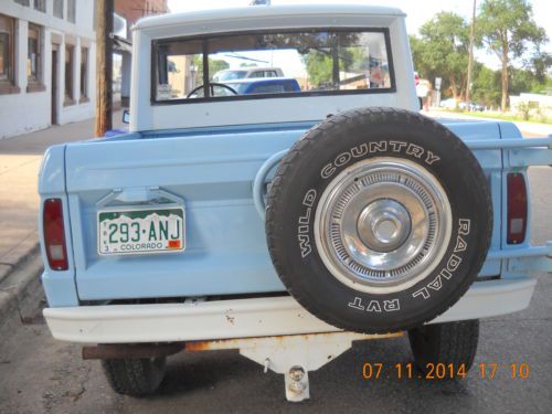 This bronco was left in a barn in 1991, by a friend of mine on his uncles farm. He kept license and insurance on the bronco until 09. It was only driven about 1000 miles since 91, so the bronco is going to need some work, such as brakes, the brakes do work just not real good, the engine has blowby, it runs good but it has been sitting a long time!!!! It was originally a 6 cylinder ,but was changed in the 70 "s . My friend has owned this bronco since 1973. The only rust I can see is the inner front fenders,, both sides have a baseball size rust spot,It is a half cab. The paint was done around 1980??? It is a very nice bronco ! I will be happy to answer any questions anyone might have, please feel free to call me. dave 720-404-7442 The bronco has a clear colorado title.The buyer will have 24 hours to send a $500.00 non refundable deposit, and 7 days to pay remainder of balance. Payment will be accepted by paypal or wire of cash, arrangements will be made with the winning bidder. Happy bidding!!!
