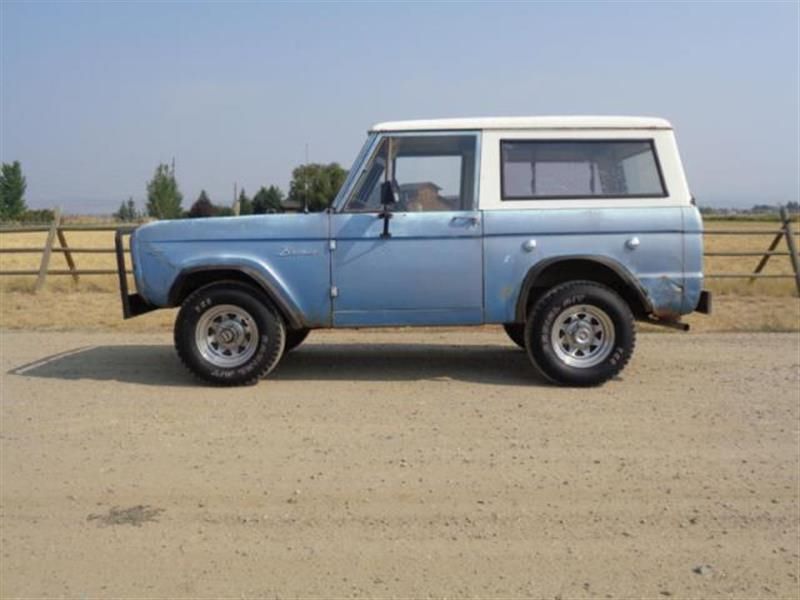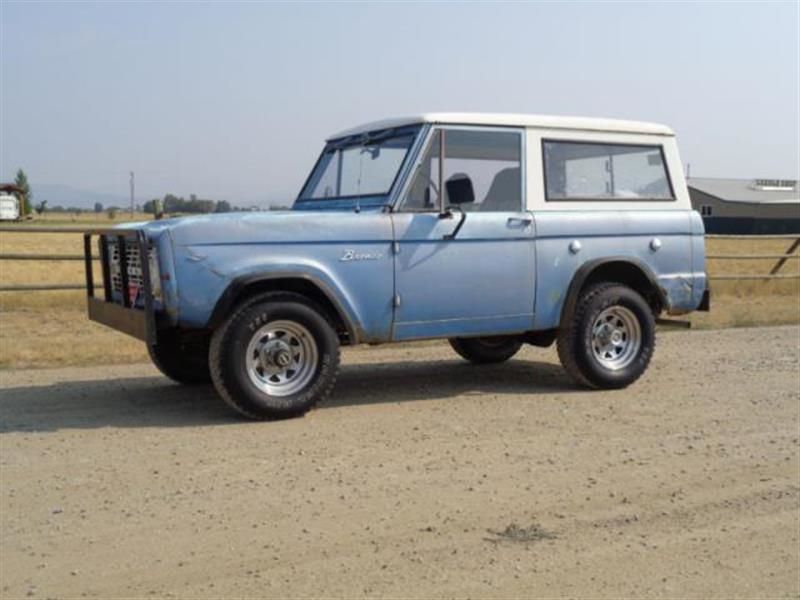 Send me questions at : RichardDockerfr14@yahoo.com 1967 Ford BroncoU100 4x4 wagon, ordered new at Hardin Auto, and never left Montana. These daysearly Broncos for sale fall into two categories - fully restored rigs, and fieldrotted hulls. Honest driver trucks have all but disappeared, this Bronco is oneof the few left. Good solid truck that you can drive and improve, or heavenforbid, actually use it for something other than posing at Starbucks. Nice drytruck with some of the typical Bronco rust, but having lived a life out west inthe land of the sagebrush and prickly pear cactus, it's surprisingly solidand it's never seen salt. See linked Photobucket for close up picsincluding underside. Factory V8 truck with factory traction lock rear end, MartiReport in the photos. I'll do my best to describe it below: driver, looks good enough for the campgrounds at Glacier Park or thetrails at Moab, and good enough to draw plenty of offers at the gas pump.Original Frost Turquoise was painted over with a darker blue that's fadingoff. Pretty straight with some dents and dings from a lifetime of hunting,camping and fishing out west. (see pics) Some of the typical early Bronco rust,but none of the rot so often seen on these.Other than a spot on each side of the inner fenders under the hood behind thetoolboxes, and on passenger side rocker and floor, it looks da