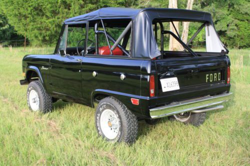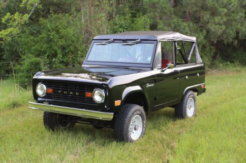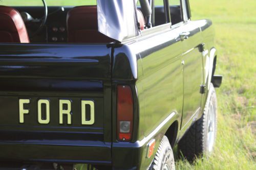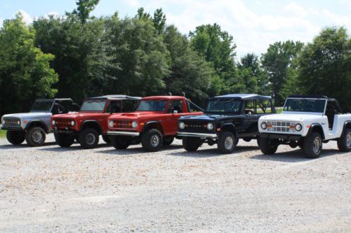 THIS IS A EXCELLANT EXAMPLE OF AN ORIGINAL BRONCO WITH THE EXCEPTANCE OF THE REMOVEABLE SOFT TOP WHICH ALLOWS YOU TO REMOVE THE TINTED WINDOWS OR GO WITH THE FULL BIKINNI TOP. THIS 170 6 CYLINDER HAS THE POWER TO GO OFF ROAD OR STAY COOL OUT ON THE HIGHWAY. THE TRUCK HAS 87,000 MILES ON THE BODY WHILE THE DRIVE TRAIN ONLY HAVING 400 MILES. I AM THE 2ND OWNER OF THIS BRONCO THIS TRUCK IS A TRUE SOUTHERN TRUCK WITH NO RUST ISSUES. THE TRUCK WAS COMPLETELY GONE THROUGH AND COMPLETED 6 MONTHS AGO . DURING THIS TIME ALL THE PARTS WERE REMOVED CLEANED AND PAINTED. THE BRAKES, BRAKE LINES AND MASTER CYLINDER WAS REPLACED. THE ENGINE COMPLTELY REBUILT AND NEW CLUTCH INSTALLED. SEATS WERE RECOVERED AND INSULATION AND FLOORMAT WAS REPLACED. THE FLOOR BOARDS HAD THE ORIGINAL RUST ISSUES AS THE BRONCO'S ARE KNOWN FOR DUE TO THE CARPET GETTING WET OVER ALL THE YEARS, HOWEVER THEY WERE REPLACED WITH NEW FLOOR PANS FROM WILD HORSES. IT HAS 411 RATIO REAR DIFF WITH LOCK AND THE FRONT IS 410 . THIS IS A GREAT BRONCO AND I AM SELLING IT BECAUSE I HAVE SEVERAL OTHER PROJECTS AND NOT ENOUGH ROOM TO STORE ALL OF THEM. IF YOU ARE LOOKING FOR A GREAT ORIGINAL UNCUT THIS IS THE BRONCO FOR YOU. This truck rides great and drives amazing. The column shifter works flawlessly and is very smooth. This is one of my 13 bronco's and like I said just not enough room to park. contact info 662 640-2527 Reeves Bronco's LIST OF NEW PARTS