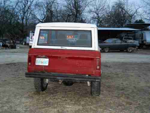 UP FOR SALE IS A 1968 FORD BRONCO.IT IS UNMOLESTED AND IS MOSTLY ORIGINAL.NEXT TO NO RUST.THE LOWER PART OF TAILGATE HAS SOME BUBBLING.I HAVE PUT A SET OF GOOD BUCKET SEATS IN IT AND A NEW CD PLAYER IN IT.I HAVE HAD IT RUNNING BUT HAS BEEN A YEAR OR SO.I HAVE PUT NEW BRAKES AND WHEEL CYLINDERS AND LOCKOUTS ON IT BUT THE LEFT FRONT STARTED LEAKING A SHORT TIME AFTERWARDS.THE GUY I BOUGHT IT FROM HAD IT GARAGED FOR 20 YRS.IN MY OPINION IT IS ONE OF THE BEST ALL ORIGINALS I HAVE SEEN.THE PAINT IS FADED BUT WOULDN'T NEED MUCH TO BE RESTORED.IF ITS NOT AS CLEAN AS I HAVE STATED THEN YOU CAN WALK AWAY FROM PURCHASE AND I WILL TAKE BACKUP OFFERS.I HAVE CLEAN ANTIQUE TITLE.I HAD ONLY DROVE IT ON BACKROADS A LITTLE WHEN I BOUGHT IT.I HAVE OWNED FOR 3 YRS.IT HAS THE 170 3 SPD ON COLUMN