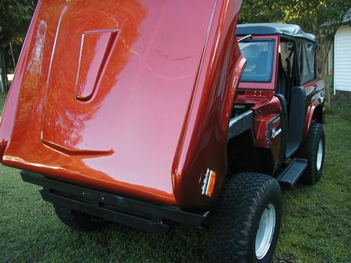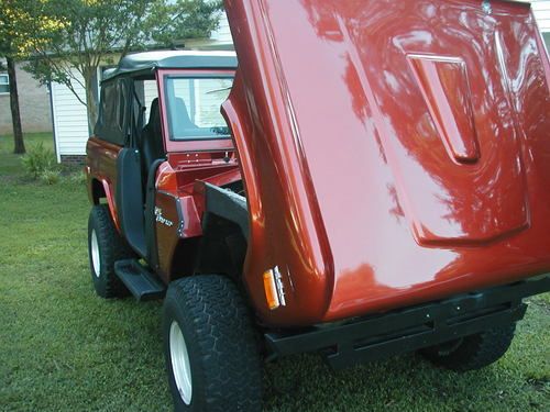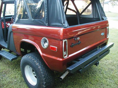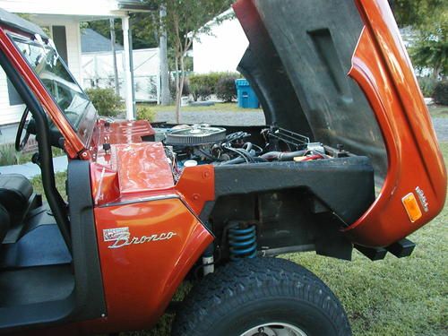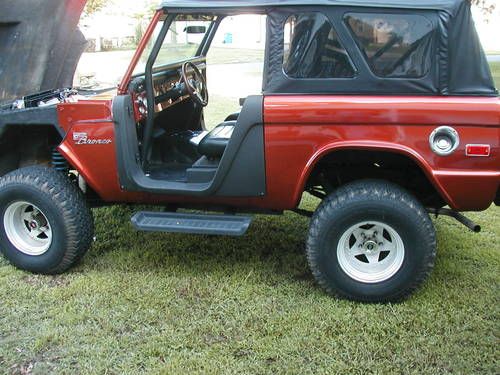 AS PICTURED A NICE EASY TO COMPLETE PROJECT BRONCO .This Bronco was purchased as is at the local C0-PART auction.Some one has put a ton of money in this one it is all fiberglass tub and tilt front end. I purchased it and had the rear fiberglass repaired ..thats all I have done with it ......other out of town construction projects have consumed my time.It comes with a 1968 ford Virginia reconstructed vehicle title with no liens ..It does run and drive and the trans and engine acts strong ..something makes a clunk noise in the drive train maybe a universal? ....the paint is really pretty good for a driver .plus the top and alot of the parts on this BRONCO looks to be new ..The interior and guages are nice as well . SOLD AS IS .. I feel it will need to be trailered to its new home..... although I have been driving it around the neighborhood like a golf cart.... .Please come and inspect before bidding ...Give me a call ..Thanks 704-200-0334