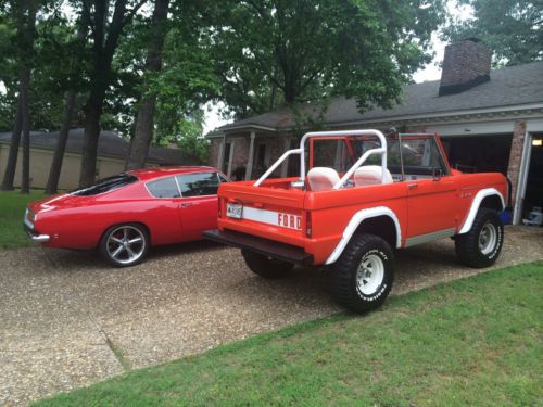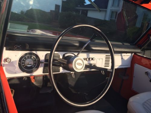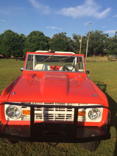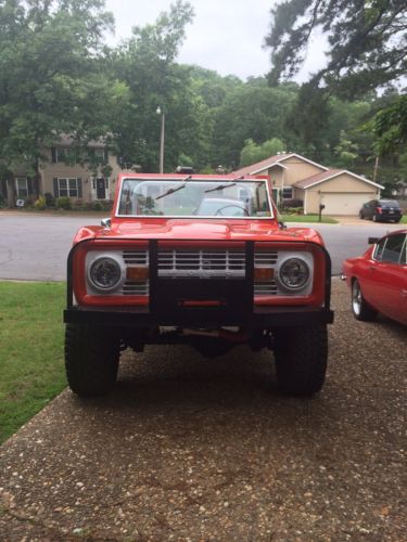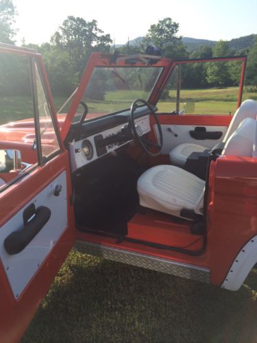 You are bidding on a beautiful 1969 Ford Bronco that I have been restoring for the past six months. I was building it for myself, so everything was done right. Here is a list of details off the top of my head: -New exterior and interior paint -Hardtop exterior painted as well -Windshield removed and new rubber gasket installed -All new door gaskets and new gasket between top and body -Bikini top (white) -Engine was rebuilt in 2010 and has approx 3k - 5k miles on it since rebuild -Transmission shifts flawlessly (new tranny fluid and modulator less than 30 miles ago) -4x4 works perfectly -Power brakes with front disc brakes and new brake pads on the rear -Rancho 4" suspension lift with RS5000 shocks -33x12.50x15 mud tires (I have a brand new set of FIVE 35x12.50x18 Mickey Thompson MTZ Radials that I was going to put on it, but never have-will make a deal) -New Bushwacker fender flares -New High Output chrome alternator -New power steering and alternator belts -Fiberglass hood with pins, but still raises on factory hinges -New ECM installed -Warn winch (currently off the bronco, but works like new) -Rear bench seat has been partially restored (new covers), but have not put it back in -New emblems -New lenses all around and upgraded headlights to get away from sealed beam design. -New Tuffy locing center console -Custom made front and rear bumpers are very well made and solid steel -Roll cage was removed and painted (I have a family cage as well that I will sell if interested) -Two BRAND NEW Infinity WATERPROOF wake tower speakers mounted on the roll bar
