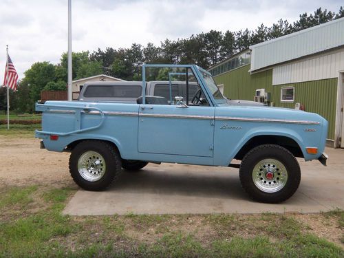 Up for Auction is my Uncut 1969 Ford Bronco Pick-Up,Frame Off Restoration done a Few Ago and is Proven Sound and Releailble, Has 302 Motor gone through at same time, New Sheet Metal on Frt. End that Include frt. Inner Fenders. Bench Seat with New Seat Cover,Seat Belts and Foam, New Carpet, 30K spent on Work, Posi Rear End. Dual Exhaust with Flow Master Mufflers,, Dual Tanks,,This Truck is Solid, New (200 Miles) BF TA Tires and American Racing Wheels, Including Spare, Has Side Spare tire mount, Moving to Rear, Have Roof in Great shape also with Wipers, Summer Now so Roof is Off,,