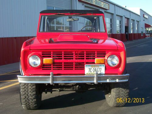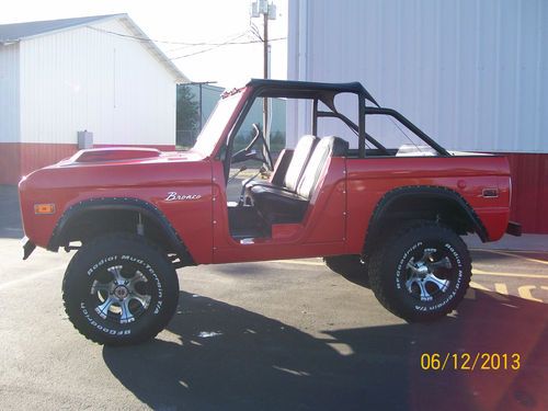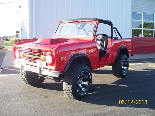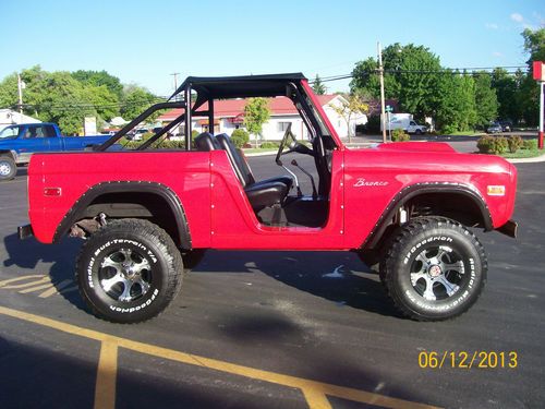 1970 Ford Bronco, Has 3" Lift, 33" BFG tires on 15X10 Cepek wheels. Engine is a 302, Aluminum heads, intake and carb from Edelbrock. 3" Flowmaster Exhaust. Has NO hardtop or doors. Has fiberglass inserts for easy removal. Only driven seldom in perfect summer weather since completed resto.