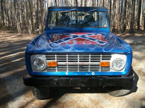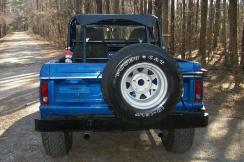 Nice Blue 1970 Bronco 4x4 with Custom Paint Job Bikini Top Doors Shaved Original 302 With Small Cam Engine Recently Rebuilt High Performance MSD Ignition Box Recently Installed Power Steering, New Clutch, and New Brakes also Installed Dual Exhaust - Sounds Really Good 3-Speed on the Floor B.F.Goodrich All Terrain Tires with Good Tread No AC No Leaks Transmission Shifts as It Should and Transfer Case Engages Properly - Mechanically Solid Minor cosmetic repairs needed, but for a 44 year old classic, the Bronco is in very good condition. I had planned to do some upgrades including adding a lift kit, chrome bumpers and fender flares, new paint job, new upholstery, and new wheels. Unfortunately, I have to spend the money elsewhere. My loss can be your gain. This is a great running classic that cranks up every time. Drive it and you will fall in love! TIME TO INVEST IN A PIECE OF HISTORY!!! If you have any questions, feel free to call Steve at 919-669-5123 or message me through eBay. If you're in the NC area, you're welcome to come check it out and drive this little piece of Americana. Thanks for looking and good luck bidding! On Apr-05-14 at 13:31:04 PDT, seller added the following information: This Bronco is also for sale locally and seller reserves the right to end the auction at any time. |