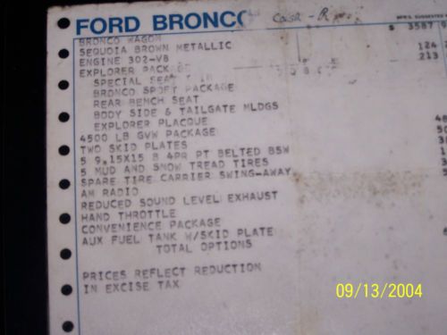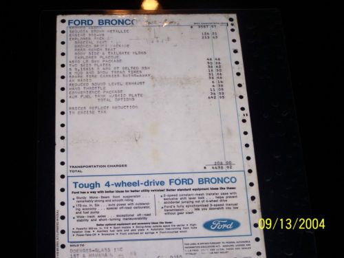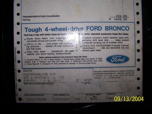 1972 ford bronco (sport) i am the third owner,still have original window sticker. came with a 302, original owner put a 390 in it, sold it to a guy i know in 1980 and he has had it until recently and i bought it.