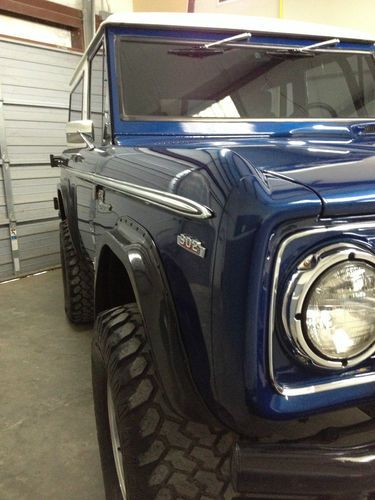 You are bidding on a Beautiful 1972 Ford Bronco Sport Edition that has had a wonderful southern life and has been modified and restored to make it the Ultimate Machine and Driver you see. No expenses spared. This bronco has been outfitted very nicely throughout the entire truck. The Bronco was completed in 2011 and has not seen a rainy day since!! Only 8000 miles on the Drive Train. The pictures do not do the Color or the Bronco Justice . Here is a list of the build, products, and components that went into the truck.