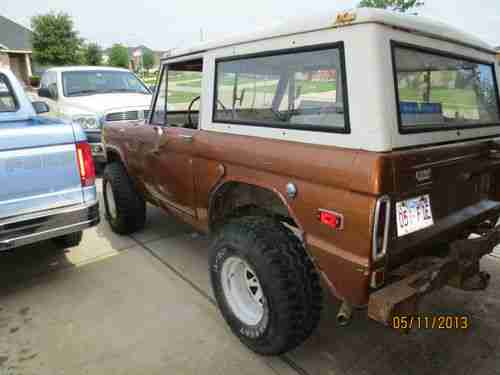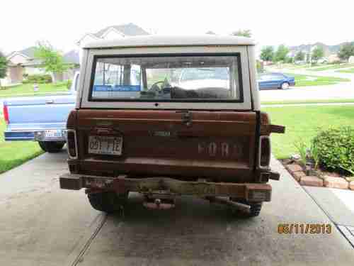 1972 Ford Bronco Sport. Neglected but a terrific candidate for a restore, I have taken worse and made nice drivers worth some seriouse cash. I have one I am working on now and do not need this one. Has all the original parts and very rebuildable. Engine, Trans and 4x4 work fine but this is not a drivable truck. The Radiator is out but included so not running. As far as the body goes it will need new rockers because of damage not rust, pasenger quarter panel and both tail light corners. Tailgate needs some rust repair and the truck needs a new floor. All parts available online and very resonable to fix, and not all that hard to do. Interior is there but needs a recover. Doors are good but comes with two extras. Can not tell you the milage cause I dont know it. Terrific chasis with some rust but can be cleaned up. Good money maker as a parts truck but even beter as a rebuild. I dont know a lot more than this about the truck only that this is a early Bronco for a good price. Tires are good, brakes are not. Thanks for looking.