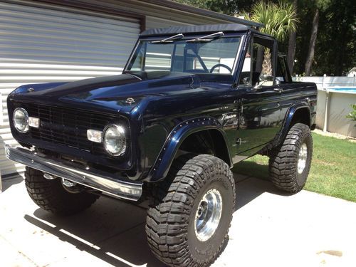 1973 FORD BRONCO 4X4 LIFTED CUSTOM BIMINI TOP 5"SUSP LIFT 2"BODY LIFT DELTRON PPG PAINT LOOKS LIKE GLASS EXTRA CLEAN MOTOR IS A 350 WITH 700R4 TRANS FIBERGLASS DELUXE COWL HOOD WITH POLYURETHANE HOOD PINS WITH SS HYDRAULIC HOOD PROP KIT NEW FENDERS AND TAILGATE 37"PRO COMP TIRES PRO COMP WHEELS ALL NEW INTERIOR ALL NEW RUBBER WINDOW FELTS SS DOOR HINGES LOTS OF SS TRIM NEW BUMPERS HEADLIGHT RINGS TURN LAMPS EXTRA CLEAN NO TRADS LOOKING TO SELL ONLY HAVE TO MANY TOYS SOMETHING NEEDS TO GO IF YOU WANT ANY MORE INFO OR MORE PICS CALL 843-877-3125