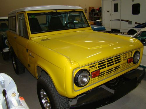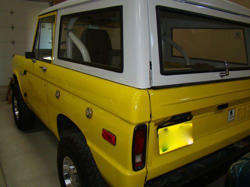 Bronco is equipped with a recently completely rebuilt 302 V-8 Engine that runs excellent, 3 Speed Manual Transmission, manual drum brakes. Bronco runs and drives great. Exterior paint is in excellent shape and shines nice. The new and freshly painted hard top looks great. When hard top was replaced, new weather stripping was added all around. Bronco only has less than 5,000 miles on the new engine. Tires are in nearly new. Oversized BF Goodrich all terrain tires and custom 16" wheels.