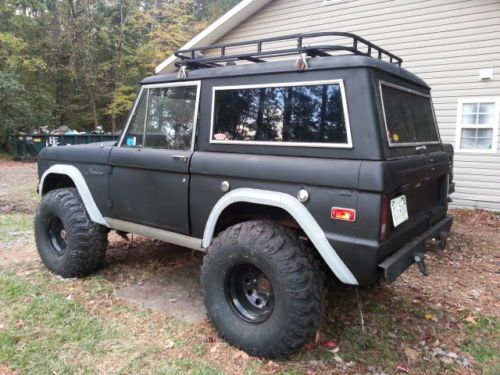 1974 Bronco was running and driving 1 year ago. It was left at a restoration shop and they never finished. The body was removed from the chassis, the frame was disassembled, soda blasted and painted. The differentials and transfer case were rebuilt and installed. It has a 302 engine and is a 4 speed manual. It has new springs, a new 3inch lift kit, new brakes, and a new radiator in the box. It has new rims and has 36" tires. Some steering components were replaced. It needs brake lines, fuel lines and shocks. It has headers and mufflers but needs the rest of the exhaust system. The body has rust in the floor pans, rockers, front fenders, around fuel tank, and the tail gate. The engine ran very good. The heads were removed to be cleaned and need to be reinstalled. The glass is all good and functional. The top is nice . It has steel bumpers, an off road jack, roof rack and roof lights and fog lights. It comes with many extra parts. See photo You can text or call with questions. Thanks. (757) 328-2945 |
