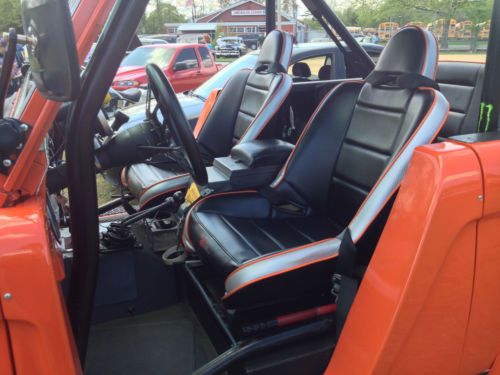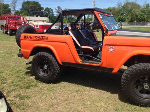 1974 Ford Bronco with Impact Series Rear Bumper w/Swing Away spare Tire, Jerry Gas Can & Cooler Rack, Front Pre-Runner Winch Bumper w/High Position Winch Mounting along with HI-Lift jack and shovel set up, Custom 6 point roll cage, custom interior with 4 point racing seat belts front and back seats, Wild horse suspension lift, custom hood sprayed black with Plasti Dip which can be removed to original color, 35 inch tires on 17inch Eagle rims painted black with Plasti Dip. New 5 speed tranny with 1,200 miles, Motor work done custom manifold and Headers, front disc brakes, new Optima Battery, new starter, new alternator, voltage regulator,the truck is Rhino lined all the way around very clean truck with custom interior, new stereo system, new fog lights, all mechanical components work on this truck, runs and drives mint it also comes with best top soft doors and top BRAND NEW IN BOX and would make a great summer truck best one I've seen on the net for the price, this truck is originally from Texas so there is very minimal undercarriage rust. give me a call and if you text make sure you write your name and number so I know its not SPAM 631-404-8792 Anthony