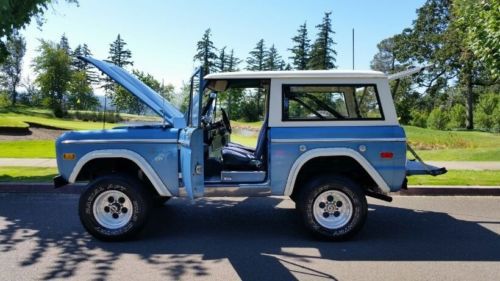 1974 FORD BRONCO EXPLORER 4x4 302 V8 RARE AUTOMATIC LOW RESERVE Hello Ebayer's, up for auction is this beautiful 1974 Ford Bronco Explorer, it is a 4x4 with matching number 302 v8 engine and 85,629 original miles. This is a very solid truck, hardly any rust, original floor boards, solid doors, starts up every time and runs like a champ. Sporting a beautiful color combination Ocean Blue w/ White accents this baby will be sure to get you a lot of attention and maybe a few envious neighbors when they see this beauty parked in your garage this fall. Purchased from the second owner who owned it for the last 16 years, he look extremely good care of this Bronco always garaged and meticulously maintained. This truck has a roll bar, locking hubs and cut fender wells to allow for some nice alloy wheels and bigger Wild Country APT Radial tires. These early first generation Broncos and getting harder and harder to come by and going up in value every day, so not only will this baby get you a lot of attention, great memories and maybe a few jealous neighbors lol but it will also make a great investment. So don't miss your chance to own this awesome Built Ford Tough 1974 first generation Bronco. Being offered at auction for 5days only and with its Low Reserve this baby will be gone.... So if you have any questions or concerns please ask prior to bidding thank you and GOOD LUCK!!! |